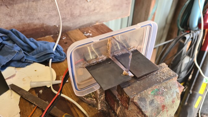 Well, it didn’t go well. 😦 That hot glue is simply no use in a device which produces so much waste heat! That partitioning gave way after few minutes, causing me to stop the experiment again. This needs to be thought through properly!