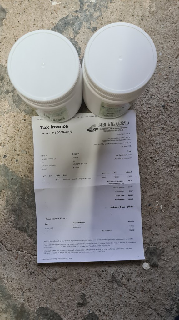 Also we’ve started running out of Potassium Hydroxide so I bought additional 2kgs.