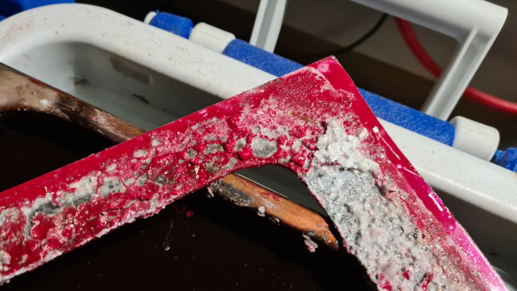I also took a video, where it perfectly demonstrate how is that aluminium being eaten away.