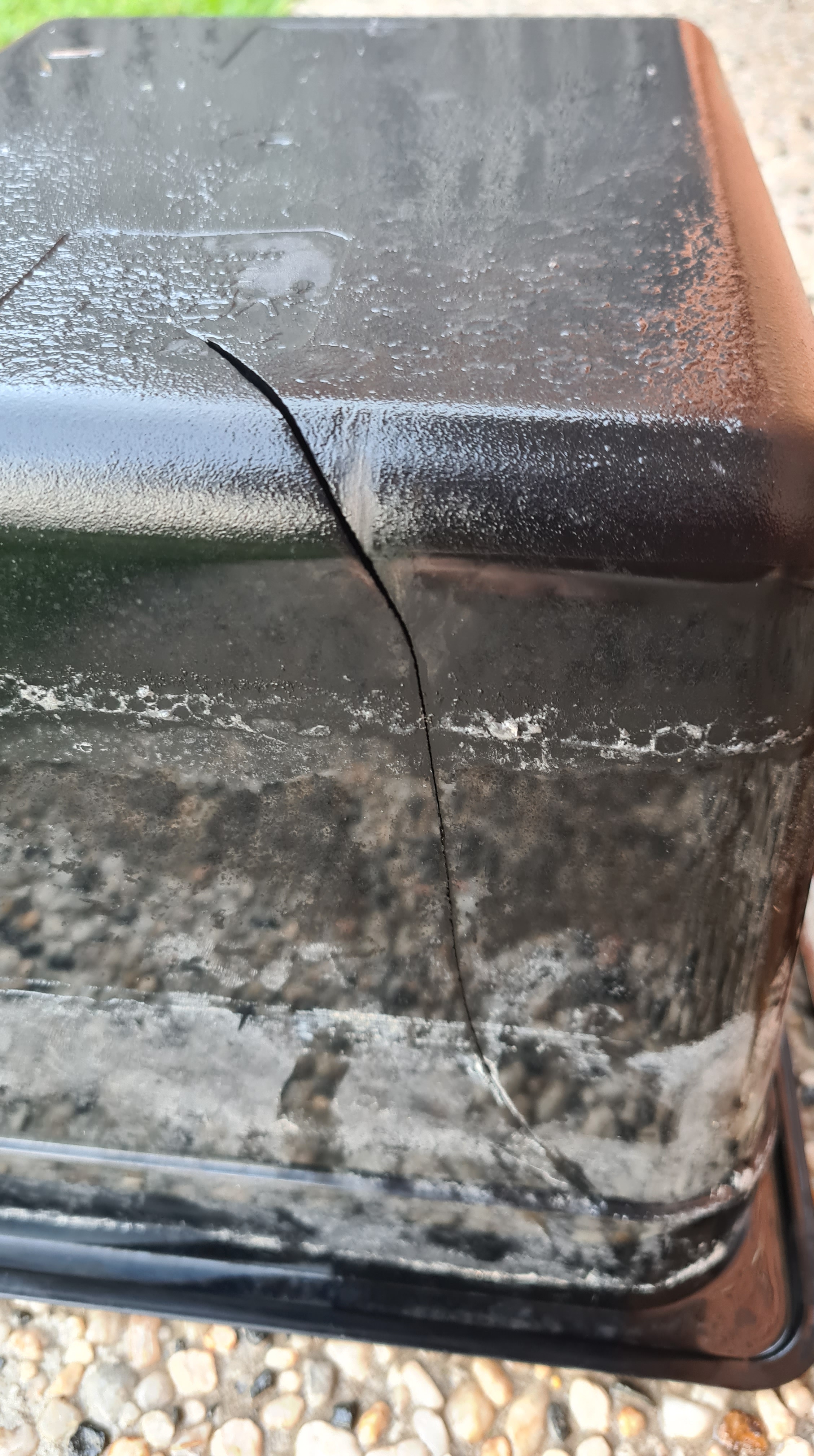 Another run. Couple minutes later into another run, I’ve noticed a new electrolyte leak in to the cooling basin. Counting to ten, I’ve extracted remaining electrolyte into a container and checked that poly-carbonate trey. It broke!