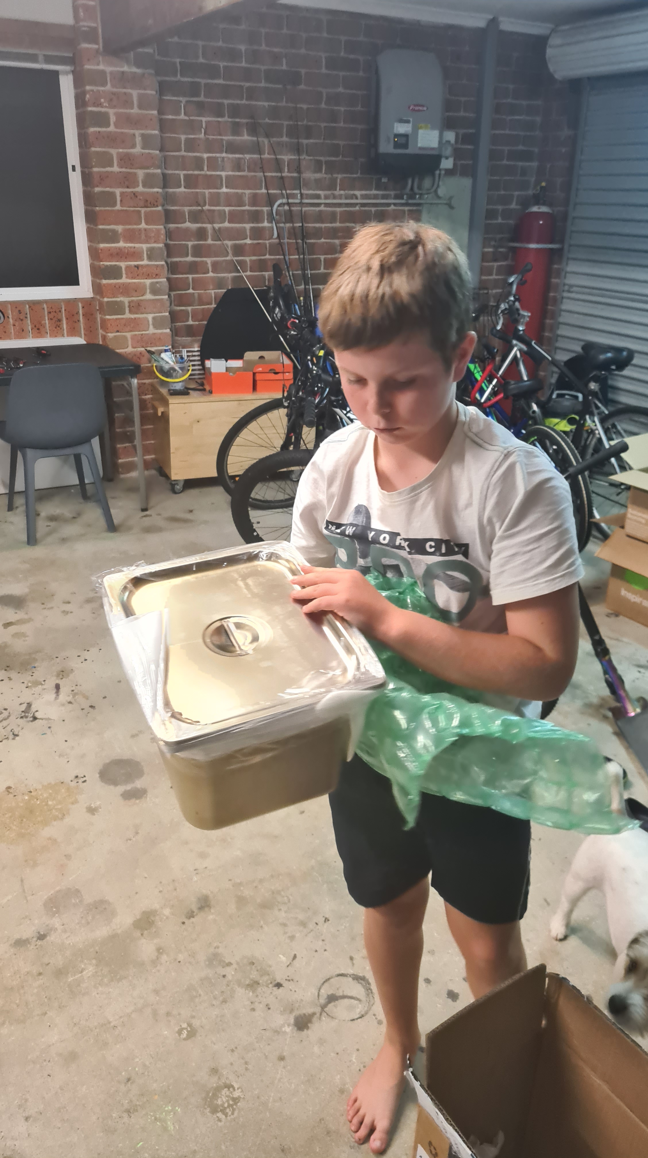 I’ve carefully sent them (safe) description of what needs to be done, asking for a quote and they came promptly with not-that-crazy $140 quote. Packaging was fun – our new stainless steel tray made it nicely in one of our used-to-be-welder boxes.