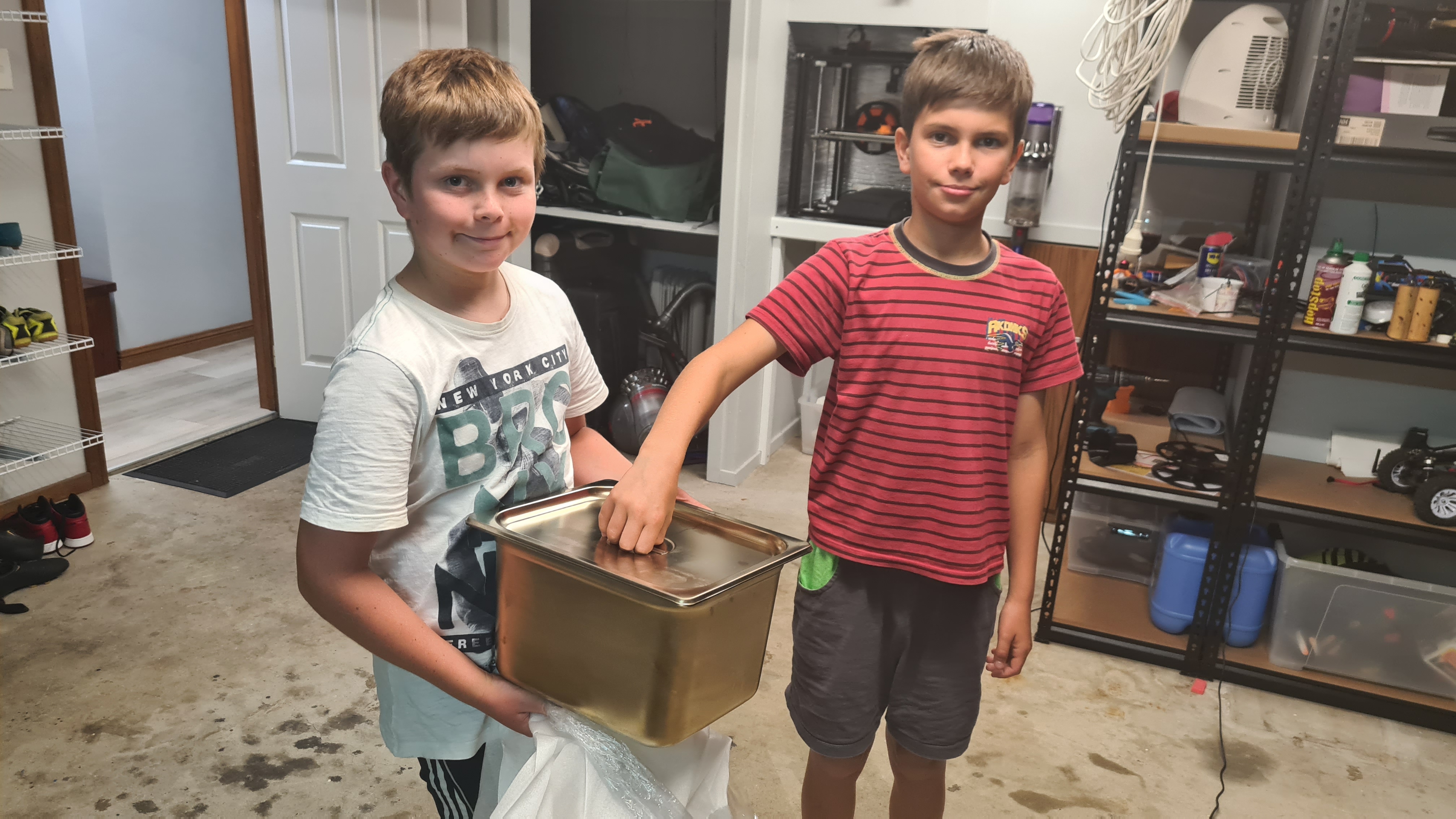 Using bitumen will provide insulation between the electrolyte and a surface of that tray and that’s what’s needed. Problem here is that bitumen seems to be sensitive to a heat and melts in higher temperatures. Also I really need to have a good heat exchange between the electrolyte and the cooling basin to remove all that excessive heat (~30% of energy input). While having couple beers with my friend Vilda, I run him through all that story and he suddenly came with an idea of Teflon!