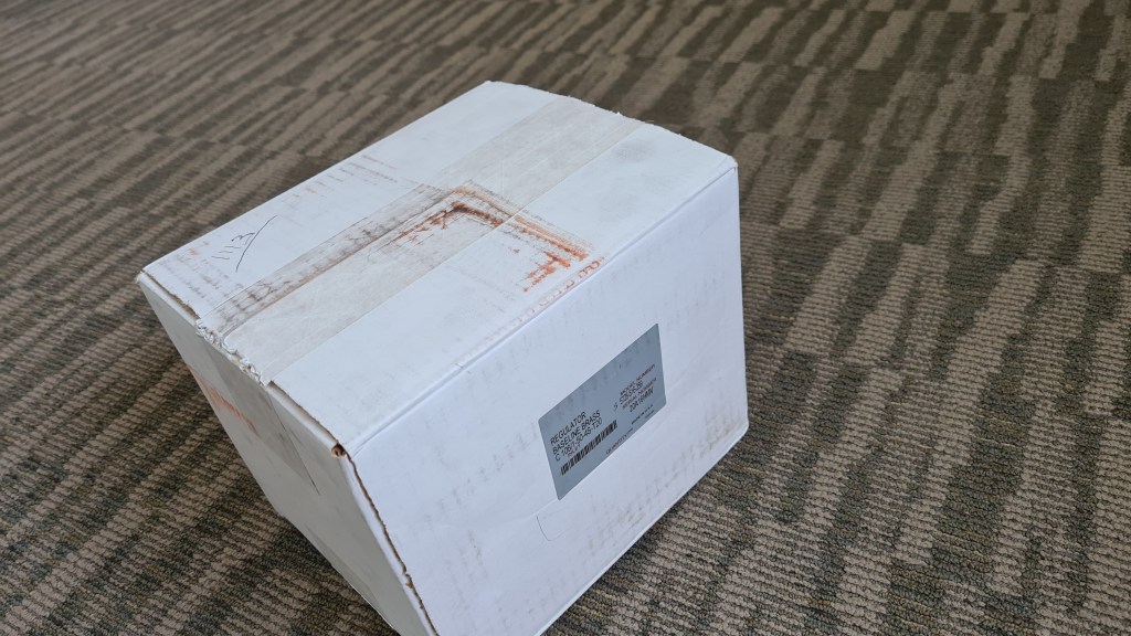 The Regulator arrived shortly in a nifty cardboard box and I enjoyed unpacking it with Eddie. It feels really solid and in a mechanical sense … beautiful. 😉