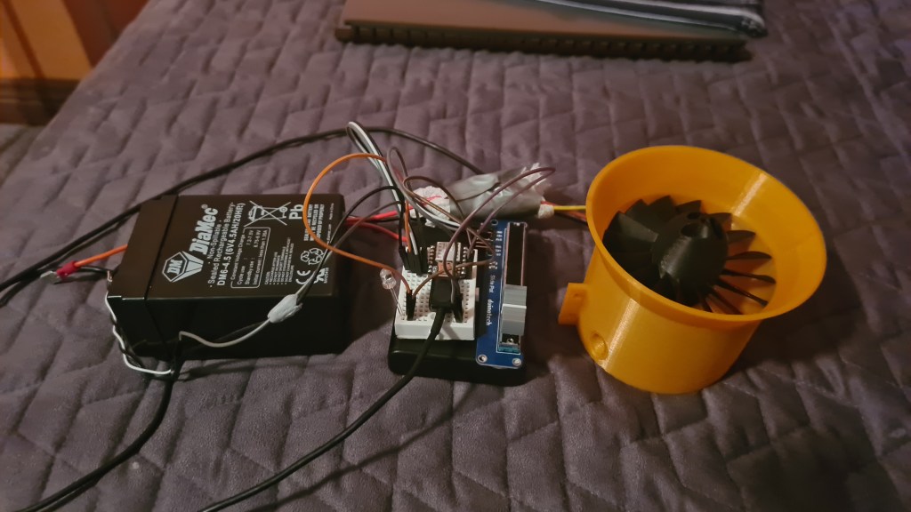 Sebi’s been working on a little project on his own – Dynamic Speed Controller – for our EDF (Electric Ducted Fan), actually making it to respond to manual controls.