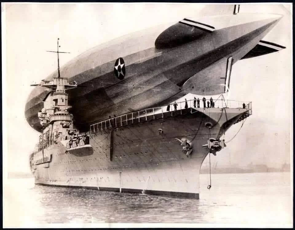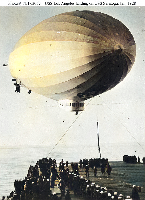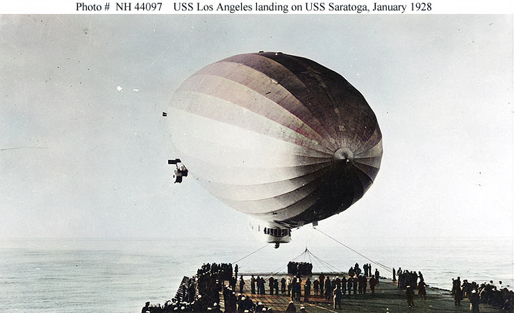 Have you ever thought how would an airship land on aircraft carrier? This very interesting situation actually happened! On 27 January 1928 the 200-meter-long airship USS Los Angeles landed on aircraft carrier USS Saratoga.