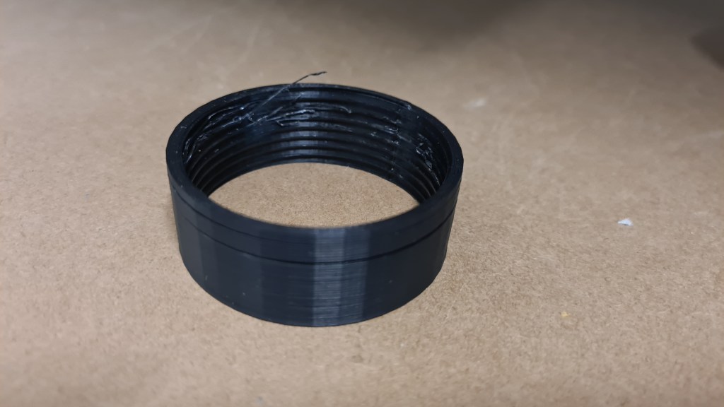 So I came with an idea of a simple “re-spacing jig” which I would screw through all that to get wire properly distributed along the tube. I’ve started with a simple “nut” design with a deep thread and it took me several prints to realise that that’s going to become serious rabbit-hole.