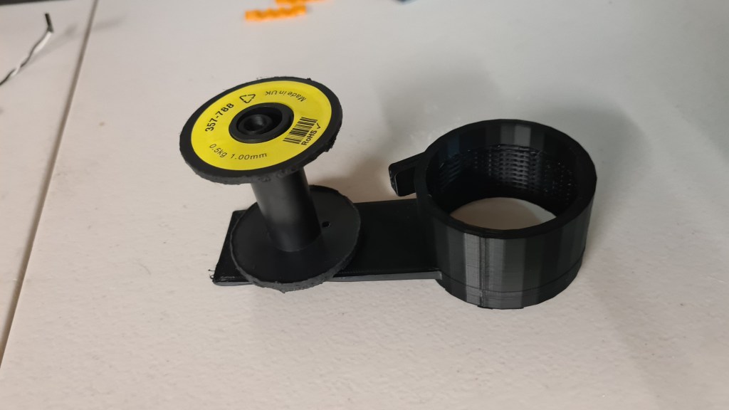 Actually it worked out pretty simple, let’s unwind that wire first and rewire it properly. As getting that wire back on a spool manually would clearly take at least 30 minutes (it is 80m long), I decided to make a new jig which would allow to rotate that tube so I can use a drill. We’ll apparently need one jig to hold the tube somewhere-ish in a middle (1) and another point at the end (2). Oh, we can’t forget a completely new jig which will then allow re-wiring itself (3)!