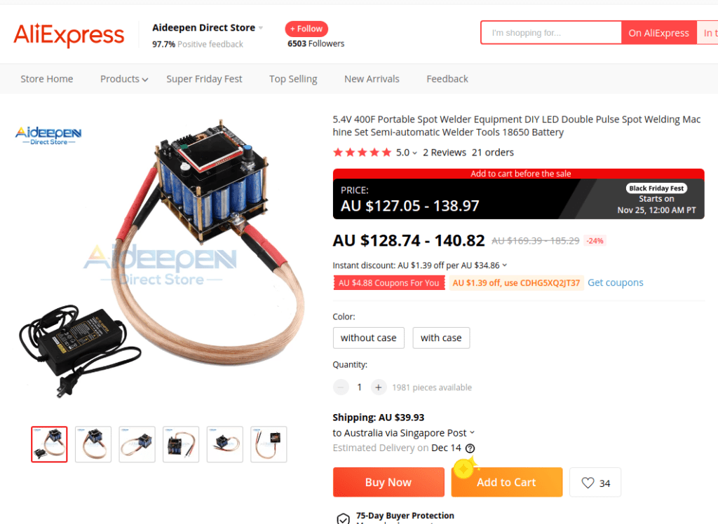 Anyway, it came with instructions – have a Nickel 0.2mm thick, then wait for it to charge first and use it with settings: pulse 1 is 25ms, pulse 2 is 20ms. This seem to be important enough that the owner made a note for himself straight on the case: