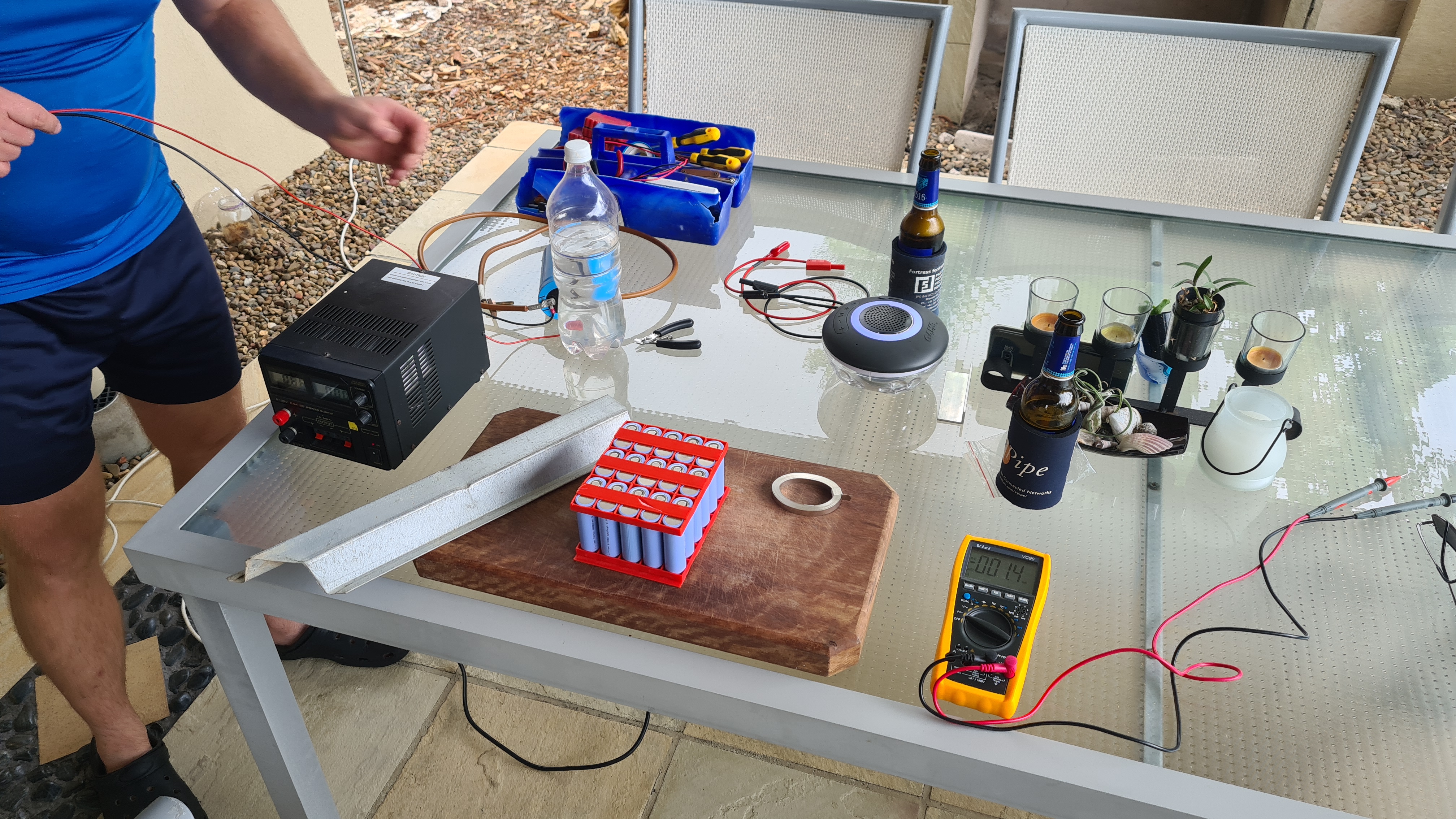 Couple weeks ago we’ve ended up last time with having a battery rack ready. Honestly not everything went that good as I was hoping for since, so we’ve hit about a week-ish delay on my plan. It looks like spot-welding is pretty difficult without a proper spot welder! Luckily Richard came back with an idea that he has some DIY one which should do the job. Here it is!