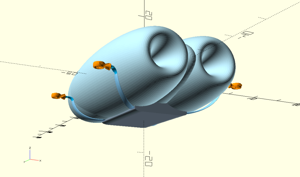 Side view – two gimbals hanging on long arms demonstrating those being skewed to get a cruciform (quadcopter drone, but in style).