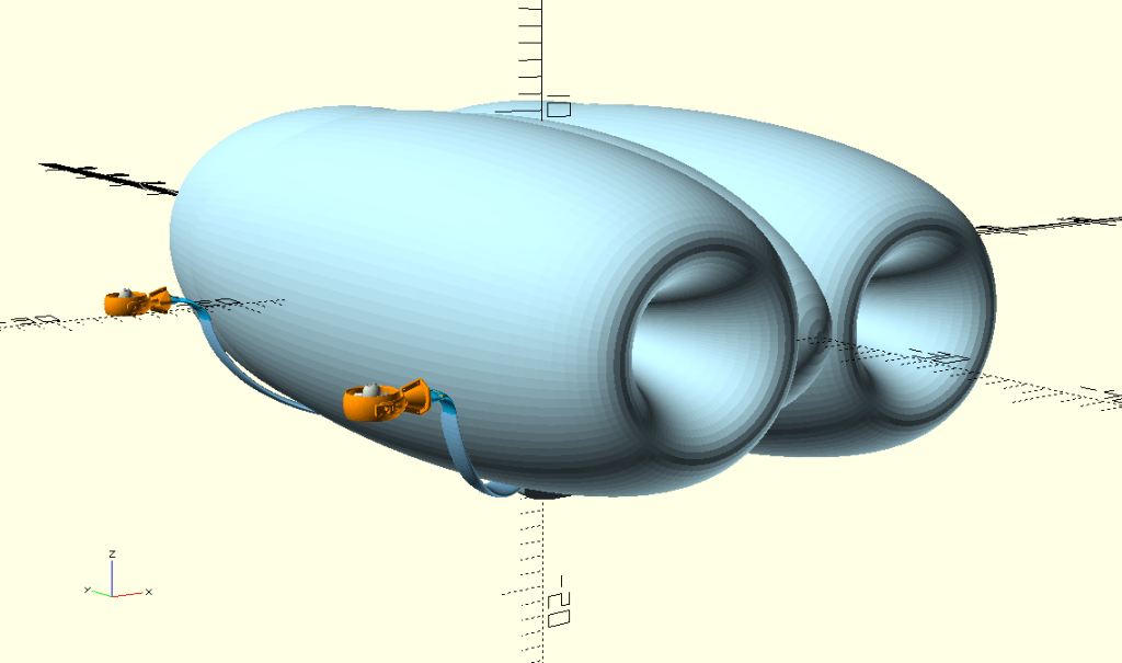 Well, this is something different – envelope is missing here to provide better overview of gimbals orientation. Gondola is just a placeholder here, but demonstrates that it’s main part is hidden in the airship body to lower its air resistance.