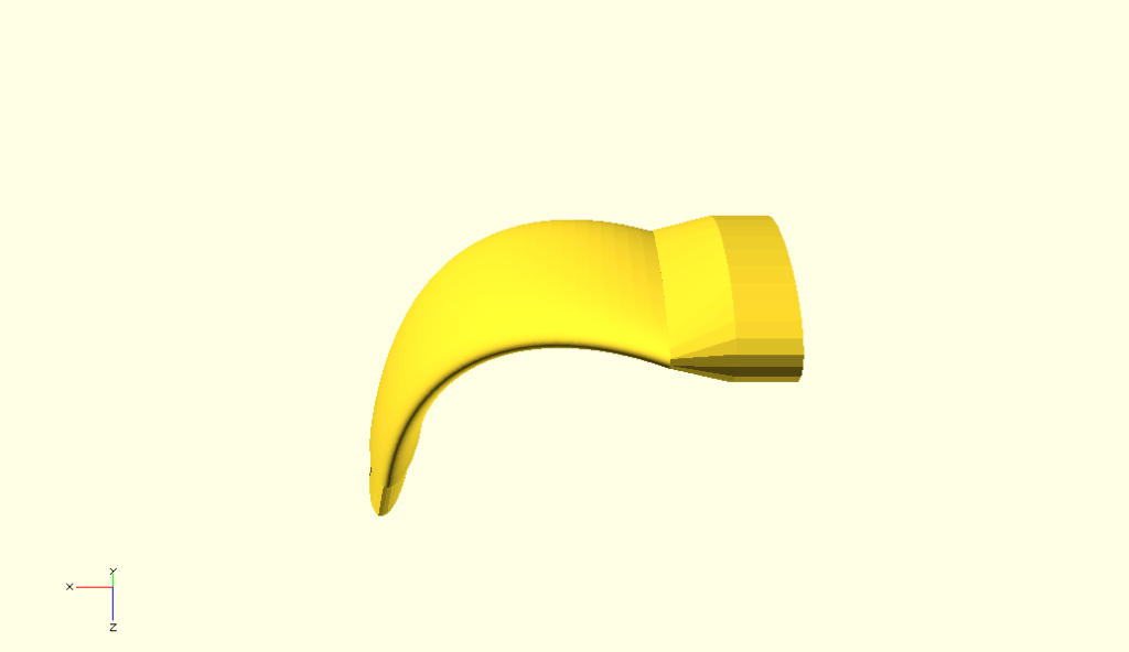 How simple it looks, it took several hours to design a shape which starts with ellipse cross-section of one size (6cm) and skews sideways into another ellipse of a different size (4cm). I am not going to spam here with a code for the others, but I am actually pretty proud of this part so here it comes!