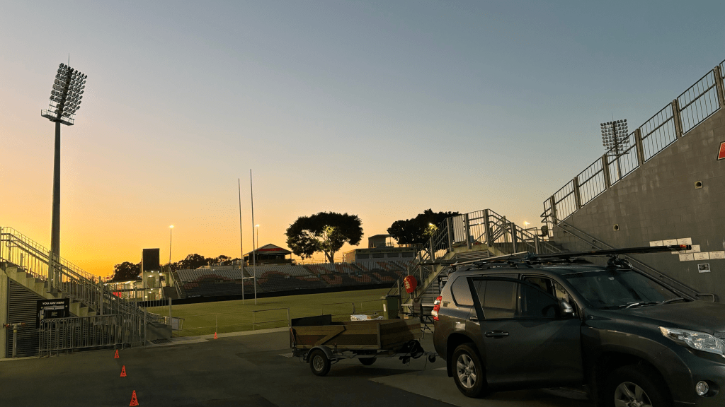 The sun rose over Kayo Stadium in Redcliffe with just the right kind of sky—calm, light clouds, 5-7 km/h winds. I saw the vanning moon and Venus hanging over the north tribune at 5:00 AM and knew the day was starting just right.