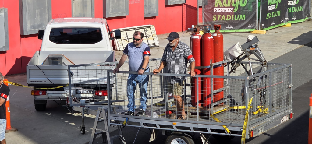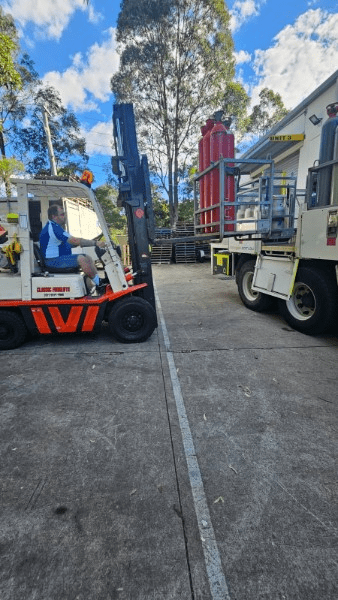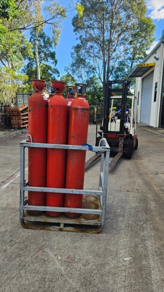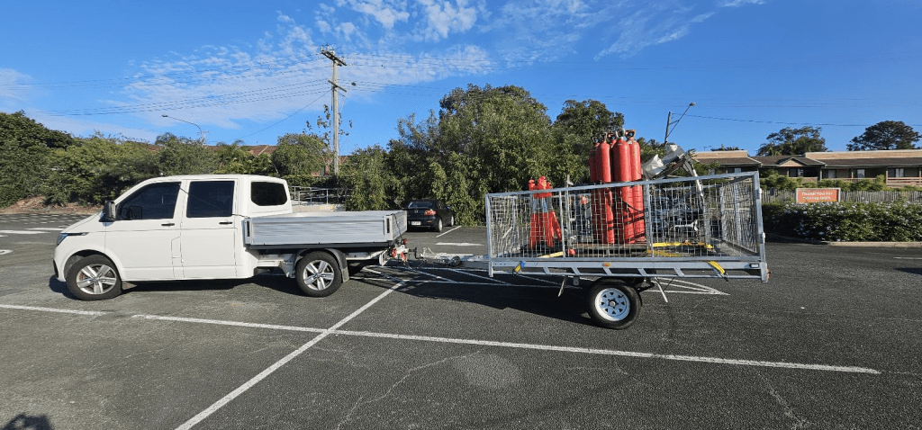 Hydrogen arrived on Thursday before the demo, thanks to CoreGas. Five pristine H2 cylinders and a pallet delivered to Vilem’s workplace, complete with a forklift cameo and some very photogenic logistics.