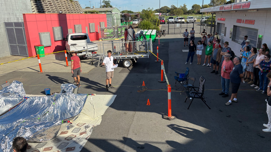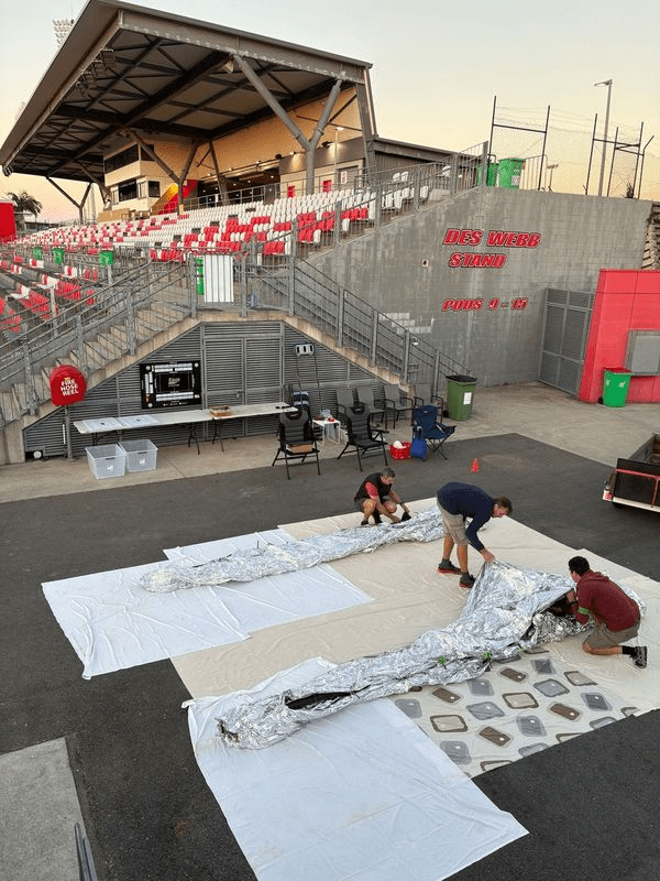 The RED security team—Rob, Damien, and Channon—kept the growing crowd in order while our media team (Silver team) began setting up drones, GoPros, and timelapse rigs. Around 8:30, everything came together. We paused, breathed, and ran the safety briefing from Chapter 8 of our Flight Plan.