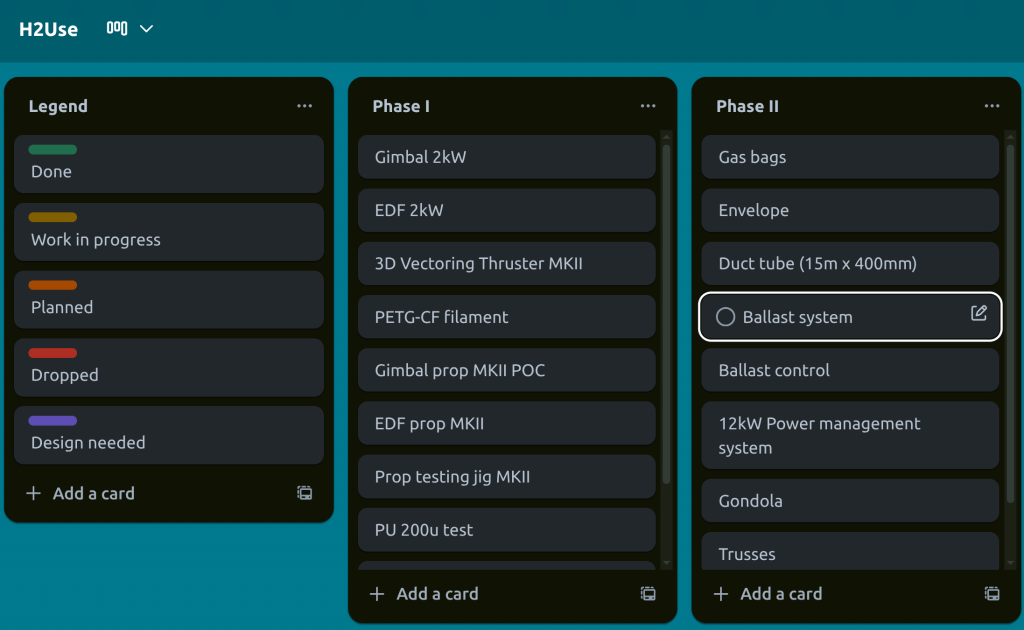 Our very first website post goes all the way back to June 4, 2020 at 2:11 AM and the Trello plan first hit the blog around December 19, 2021. Since then, the real magic happened inside the Projects section — our testing ground for everything we needed to make flying with hydrogen a reality. Here’s the greatest hits list: