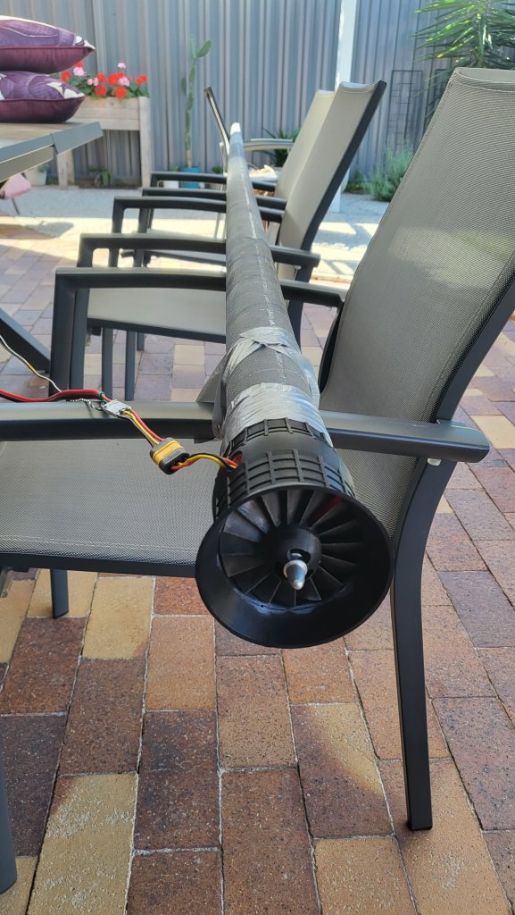 One of our main design features relies on having a central duct which, when mounted with a front EDF, will allow lowering front envelope pressure, strengthen internal stability in a center of weight serving as airships keel and it will finally replace all rudders and elevators needed with a thrust vectoring.