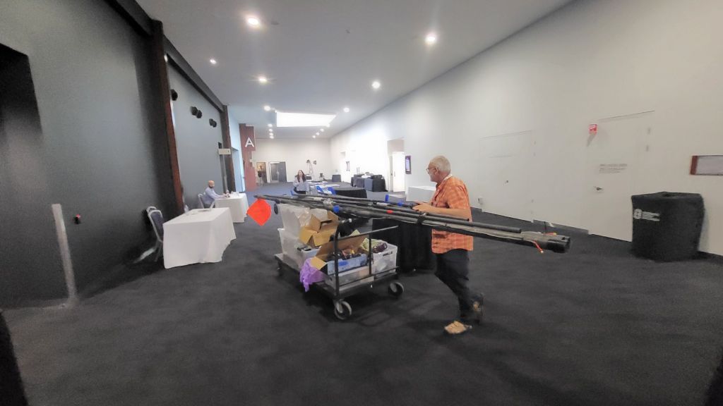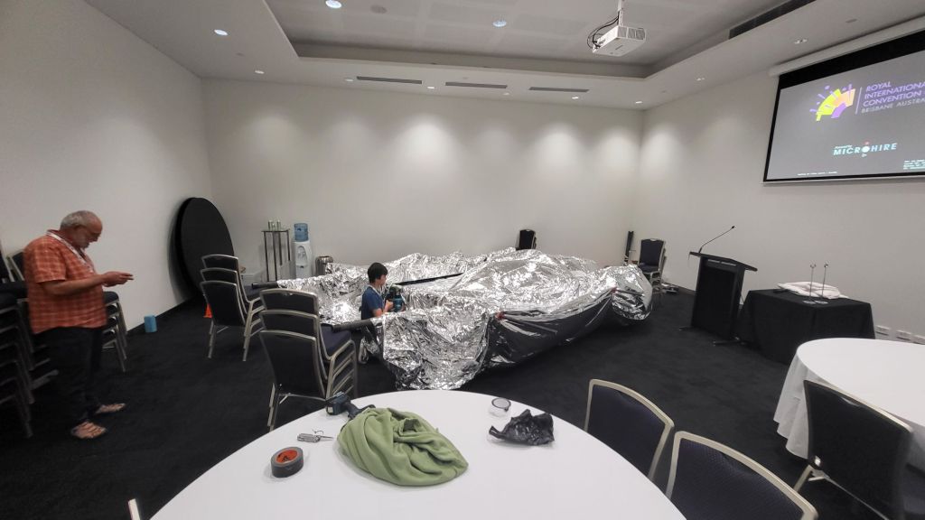 Early birds Mick Cullen and I started unloading gear well before sunrise. By 7:00 AM, the assembly area was alive. Sheets laid out, ducts inserted, envelopes unfurled.
