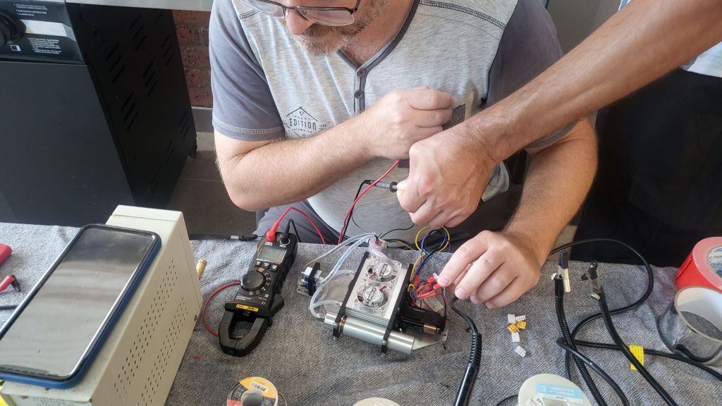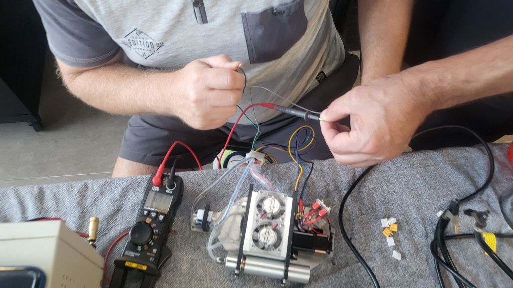 The prep days—Friday and Saturday—were productive in that satisfying way that comes when every cable is labeled, every motor is verified, and every part feels like it’s clicking into place. Sebi, had spent hours rewriting and testing the control logic on the Arduino, connecting everything from RC inputs to vectored thrusters and solenoids. We had one unresolved issue with a noisy EDF intake, which in hindsight should have been replaced—but overall, we went to bed on Saturday night feeling ready, in that “ok-ish” sort of way engineers know well.