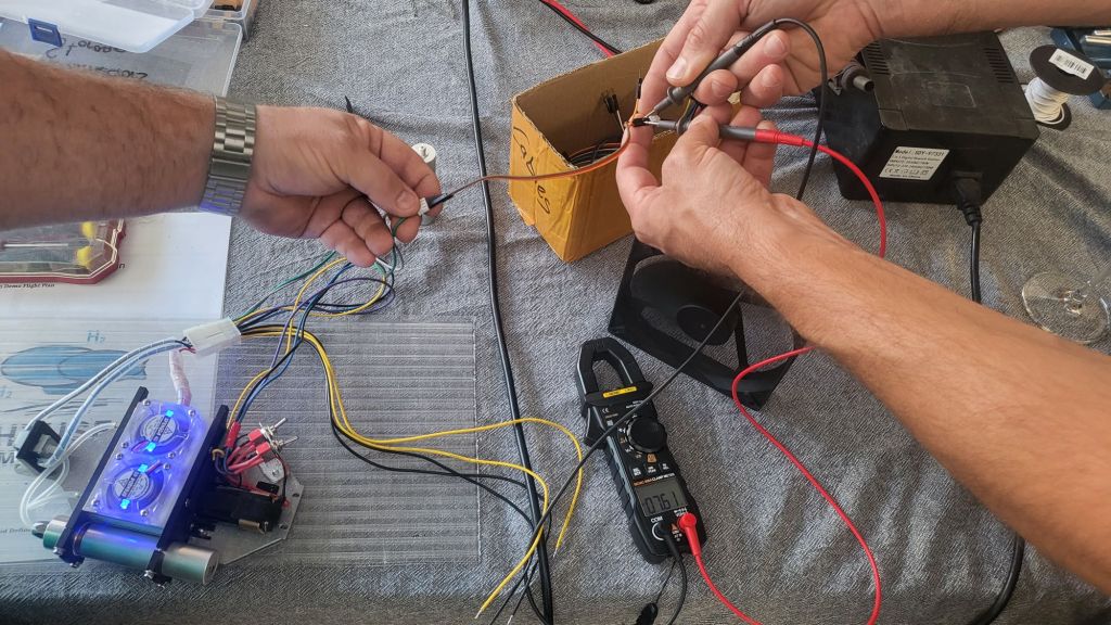 Kristian and Lumir mounted the hydrogen fuel cell platform at the heart of the gondola, lighting up LEDs powered entirely by our H2 system—a small, glowing promise of flight.